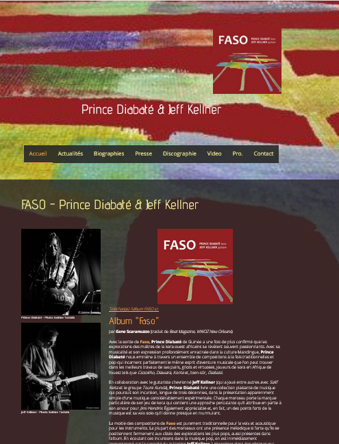 Photo Prince Diabate, Jeff Kellner - Sabine TostainLe duo formé par Prince Diabaté et Jeff Kellner disposait d’un album, d’un contenu de dossier de presse et quelques sons et une vidéo en ligne mais pas de site internet pour vitrine et présence web de leur projet ensemble.